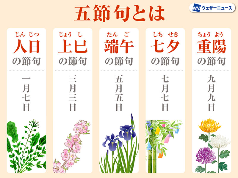 Các ngày lễ tiết quan trọng được gọi chung là 五節供 (Go-sekku), bao gồm: