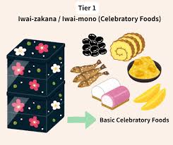 Tết Nhật Bản là dịp đón 歳神様 (Toshigami-sama – thần năm mới) và cầu mong mùa màng bội thu. Các món ăn dâng thần, sau đó được cả gia đình cùng thưởng thức, thể hiện sự gắn kết và lời cầu chúc cho năm mới bình an.